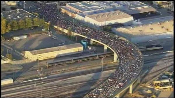 One of America's busiest shipping ports is closed after thousands of demonstrators march on the city
