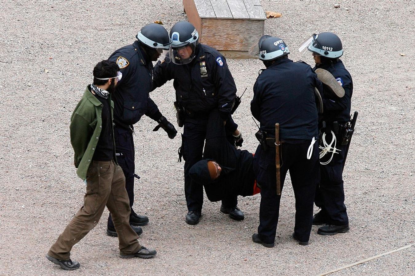 A mass of police officers began to gather around the kitchen area to begin arresting the remaining protesters. Reports from inside indicated the arrests were orderly and non-violent, but some protesters and press who managed to leave the area reported that they saw officers beating and stepping on demonstrators.