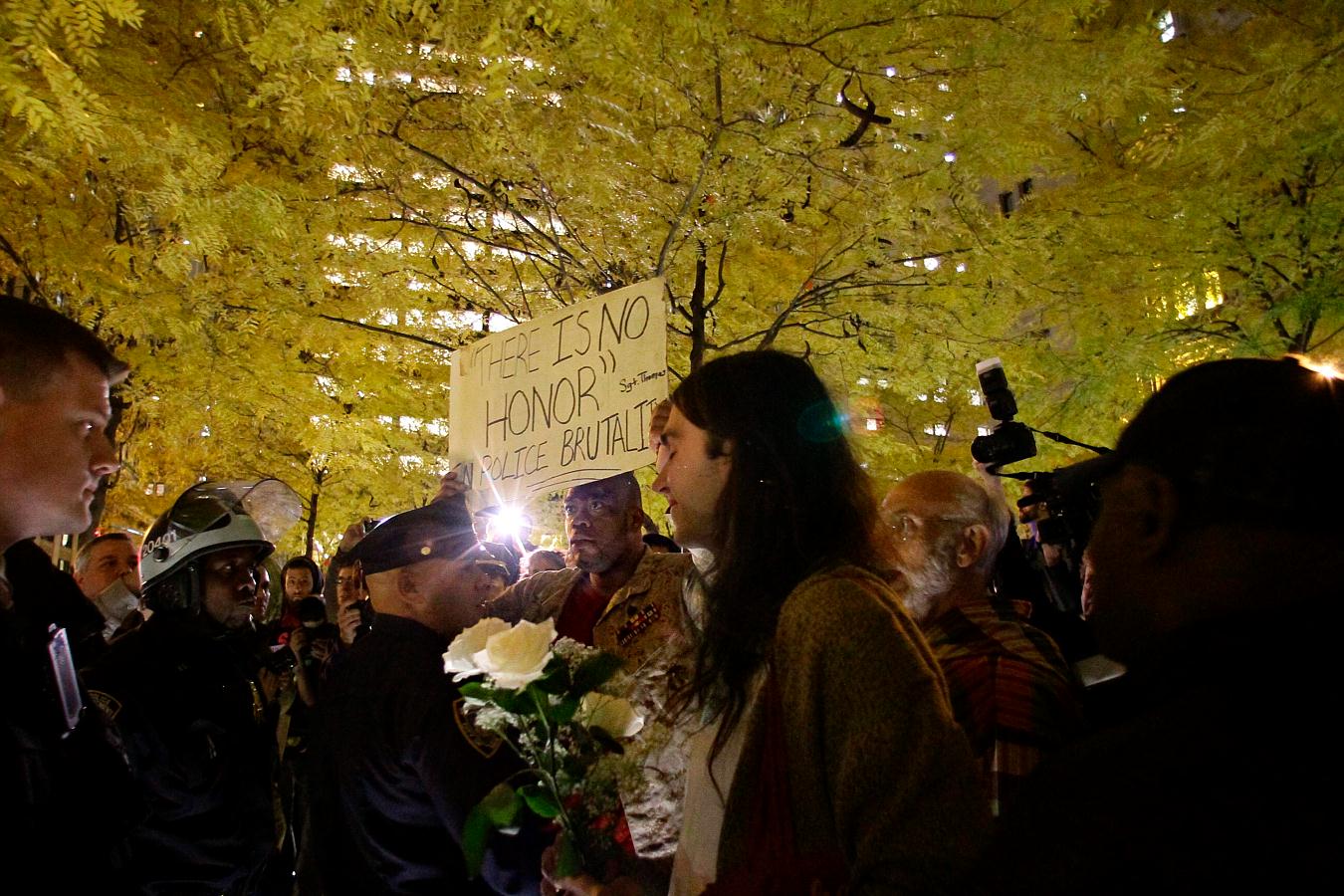 In reaction to the near killing of a protester, US war vet who served 2 terms in Iraq, Scott Olsen.