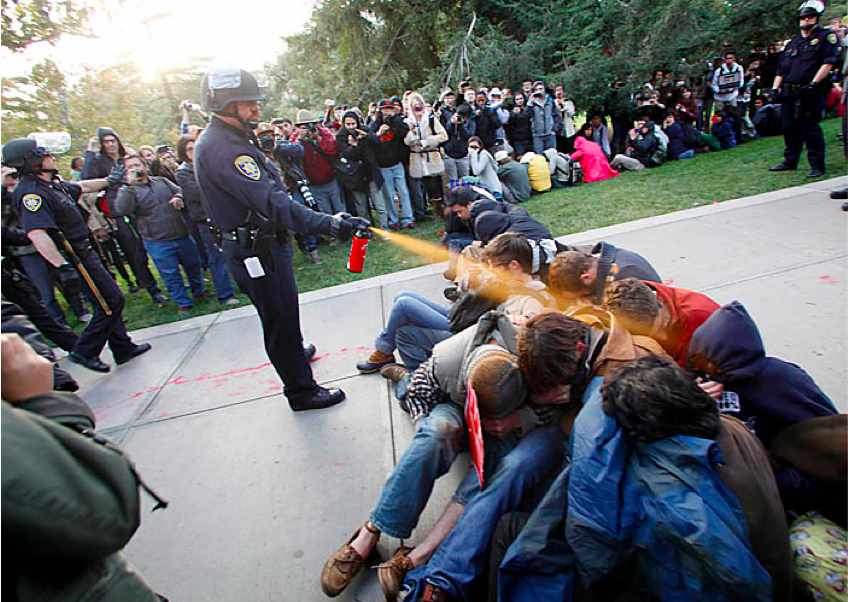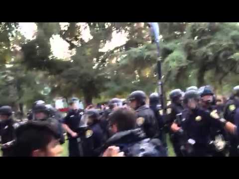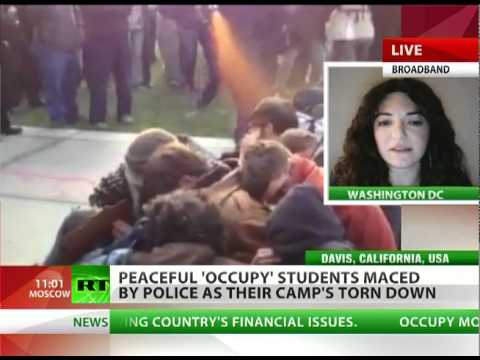 Police in the U.S. have used pepper spray against students taking part in an 'Occupy' campaign at the University of California. Demonstrators had been ordered to remove their camp, but after refusing, officers showed up and tore their tents down.