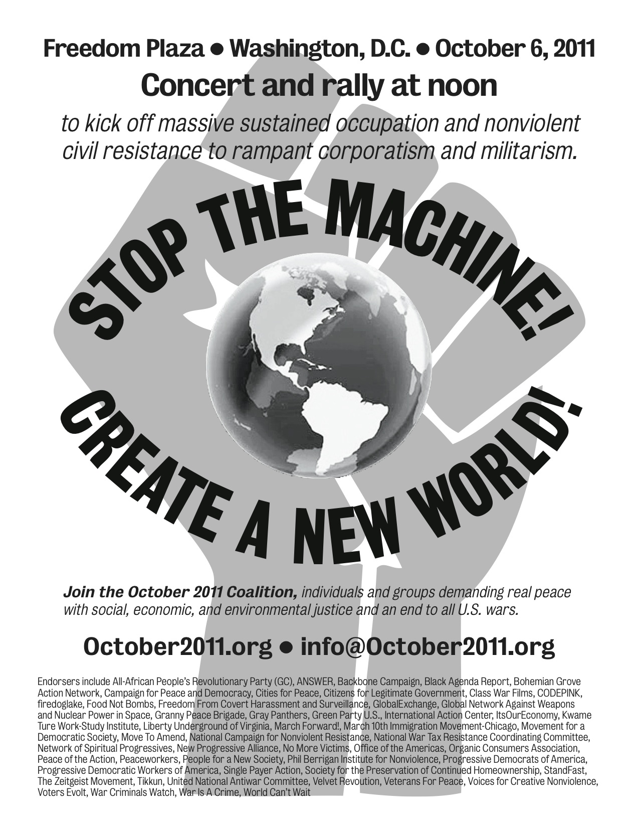 On October 15th, we will meet on the streets to initiate the global change we want. We will peacefully demonstrate, talk and organize until we make it happen.