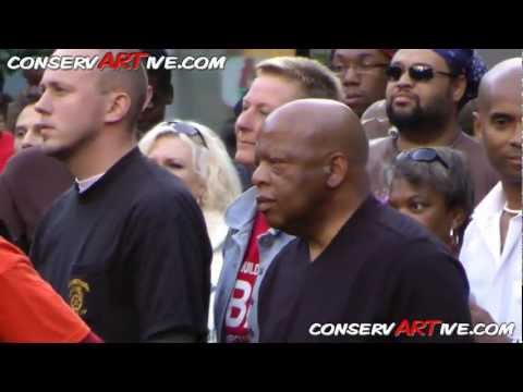 "You’re talking about raising political consciousness so it spills over all parts of the country, so people can begin to see what’s going on through a set of different lens, and then you begin to highlight what the more detailed demands would be. Because in the end we’re really talking about what Martin King would call a revolution: A transfer of power from oligarchs to everyday people of all colors. And that is a step by step process. In the end we’re really talking about what Martin King would call a revolution; a transfer of power from oligarchs to every day people of all colors, and that is a step-by-step process. It’s a democratic process, it’s a non-violent process, but it is a revolution, because these oligarchs have been transferring wealth from poor and working people at a very intense rate in the last 30 years, and getting away with it, and then still smiling in our faces and telling us it’s our fault. That’s a lie, and this beautiful group is a testimony to that being a lie. When you get the makings of a U.S. autumn responding to the Arab Spring, and is growing and growing—-I hope it spills over to San Francisco and Chicago and Miami and Phoenix, Arizona, with our brown brothers and sisters, hits our poor white brothers and sisters in Appalachia—-so. it begins to coalesce. And I tell you, it is sublime to see all the different colors, all the different genders, all the different sexual orientations and different cultures, all together here in Liberty Plaza; there’s no doubt about it.