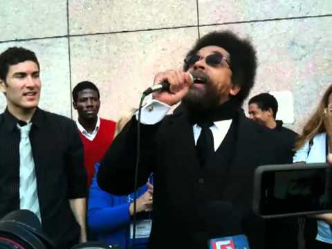 Princeton University professor Cornell West was speaking at #occupywallstreet day 11 peoples assembly. In the video, the load shouting method, repeating the speakers words clearly, is used becuase 2000 people had to listen and the NYPD forbid the use of loudhalers, soundsystems etc... Being interviewed by Amy Goodman on Democracy Now after spending time in the occupation, Cornell West stated:
