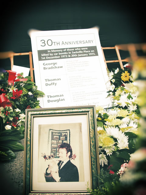 Tommy DouglasTommy, a native of Stirling, Scotland was only 21 when his life was so cruelly taken from him on a Dublin street on 20th January 1973.He, along with his brothers and sister, was raised in a Scottish mining community. He served his apprenticeship as an electrician and, when he qualified, he decided to move to Dublin. The family had strong leanings towards Ireland and had spent their childhood summers in Achill Island, the native place of their mother. Tommy was very proud of his Irish ancestry and all things Irish. Tommy was very close to his mother, always offering help. He thoroughly enjoyed his holidays in the West of Ireland and their occasional stop-overs and visits in Dublin. Most of the songs he knew were Irish songs. In a way, therefore, it was no great surprise that he chose Dublin in 1972 to check out whether, as a newly qualified electrician, he could find electrical work or indeed set up such a business in Dublin. He was grateful that the temporary job on the buses gave him the funds to live in the city and check things out. There’s no doubt, though, that he enjoyed his role as a busman, his personality well-suited to mixing with colleagues and the public alike. His fiancée had joined him a very short time before his death. The 40th anniversary of the Dublin bombings of December 1972 and January 1973 will be marked with a significant commemorative event on Tuesday, 4th December 2012 at 11.30 am. A wreath-laying ceremony to honour and remember the three busmen who were killed will take place in Sackville Place at the site of the pavement memorial: ‘A Fallen Bouquet’. The Lord Mayor of Dublin, the CEO of Dublin Bus, Justice for the Forgotten and family members will lay wreaths. The oration will be given by Mr. Jack O’Connor, General President of SIPTU. The CIE Male Voice Choir and Ms Grace Bradshaw, grand-daughter of the late Tommy Duffy (killed on 1st December 1972) will provide the music. Nobody has ever been arrested, let alone convicted, of these atrocities. Everyone is very welcome to attend and show solidarity with the families, some of whom will be travelling from overseas to attend the event.