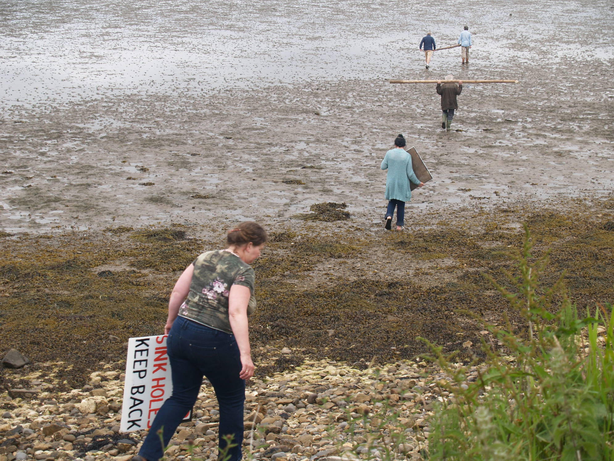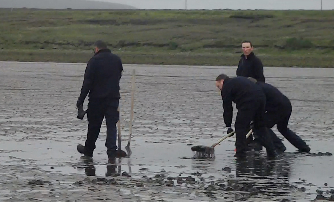 Jump To Comment: 1Photos of Shell workers out in Sruwaddacon estuary earlier in July, attempting to fill in some of the sinkholes.