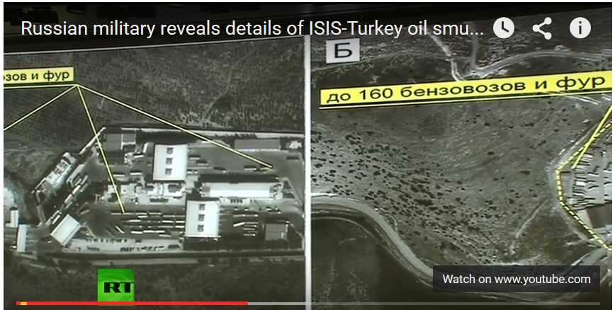 For the past year, there have been numerous reports that ISIS have been transporting the oil they have stolen from Iraq and Syria, to Turkey and this has been greatly facilitated by the Turkish state at the highest levels. It is widely known the oil was being sold and exported by BMZ Ltd owned by Bilal Erdogan, President Erodgan's son. It is extremely unlikely that they are doing this for nothing and tens of millions have probably been siphoned off by the Erdogan family and other key officials and the Turkish economy has no doubt benefitted from an injection of cheap stolen oil sold below world market rates. The Russian Defense Ministry on Dec 2nd revealed the vast scale of the oil smuggling operation which somehow was missed by the NATO/US in the past 2 years.