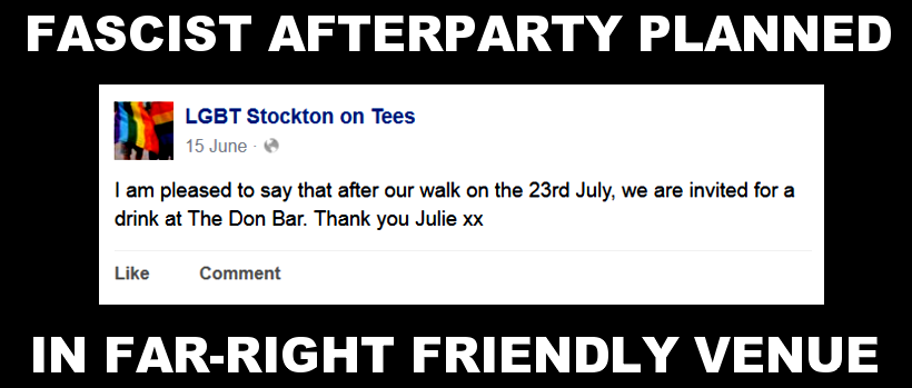 After the fake LGBT march ends, they will be holding an afterparty at the Don Bar, a popular Stockton venue which has welcomed the far right to hold a fascist music event.