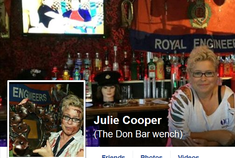 Afterwards, the far right thugs have been invited by manageress Julie Cooper to drink at the Don War Memorial Bar, a British military-themed bar which is openly welcoming pretend soldiers like Bill Weir and other racists to drink there: -