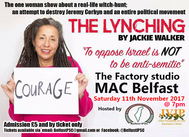 Belfast IPSC is proud to host Jackie Walker, former Labour Party member and former vice-chair of Momentum, on the Irish leg of her tour on Saturday 11th of November 2017 in the MAC theatre Belfast's "The Factory" studio between 7 and 9pm.