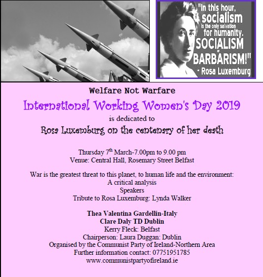 International Working Women’s Day - Welfare, not warfare -Thurs 7th March, Belfast