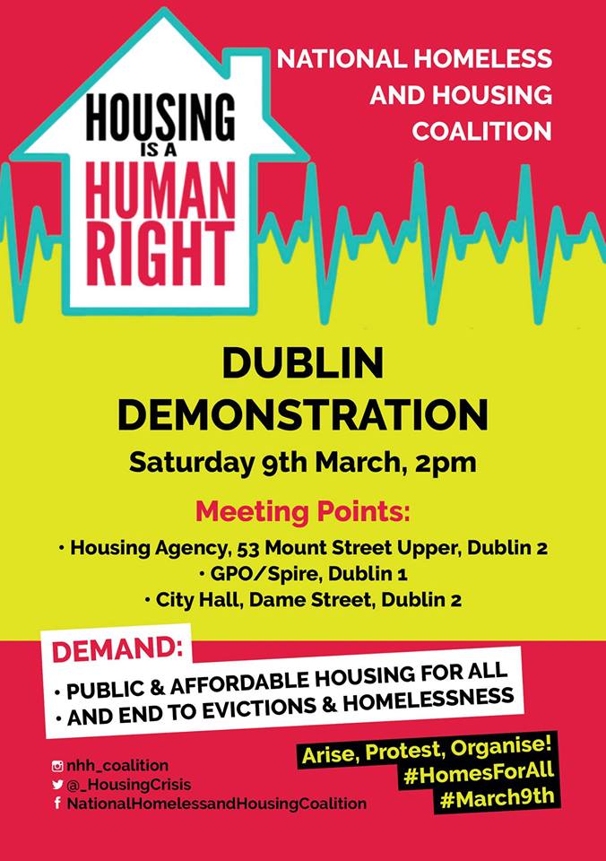 Join us tomorrow #March9th at 3 locations for the Dublin Housing & Homeless Demonstrations.