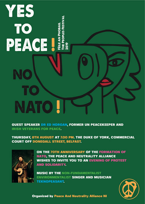 | Antrim - Event Notice Thursday January 01 1970 Yes to Peace - NO TO NATO ! - The Peoples Festival 2019 -Belfast - Aug 8th antrim | anti-war / imperialism | event notice Monday July 15, 2019 22:34 by pana - Peace & Neutrality Alliance![]() Feile An Phobail / The Peoples Festival 2019 Feile An Phobail / The Peoples Festival 2019 |