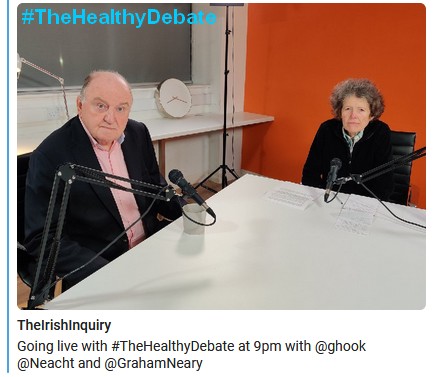 'The Healthy Debate' in association with @HealthFreedomIE looks at the role of the media in the reporting of #COVID19 in #Ireland. Presented by journalist and author Lindie Naughton with guests George Hook and Graham Neary. The Healthy Debate is live every Tuesday night at 9pm on The Irish Inquiry. In the sea of misinformation, we need courage, we need the truth, we need #TheHealthyDebate. The Irish Inquiry https://theirishinquiry.com/shows/the-healthy-debate/ Health Freedom Ireland https://healthfreedomireland.com/the-healthy-debate/ Watch, share and like on YouTube https://youtu.be/FuZwXhu2EDQ Watch, share and like on Facebook https://www.facebook.com/TheIrishInquiry/videos/643396806336738/?vh=e&d=n Please help us share the word. Also give us feedback and input on any of the two websites above! Next show Tuesday week 9pm. The Irish Inquiry The Healthy Debate - The Irish Inquiry Our Health. Our Society. Our Future Facilitating conversations on the health of our society through freedom of speech and freedom of conscience. In a series of conversations with both experts and witnesses we are going to explore how the current Corona-measures… Caption: Video Id: FuZwXhu2EDQ Type: Youtube Video |