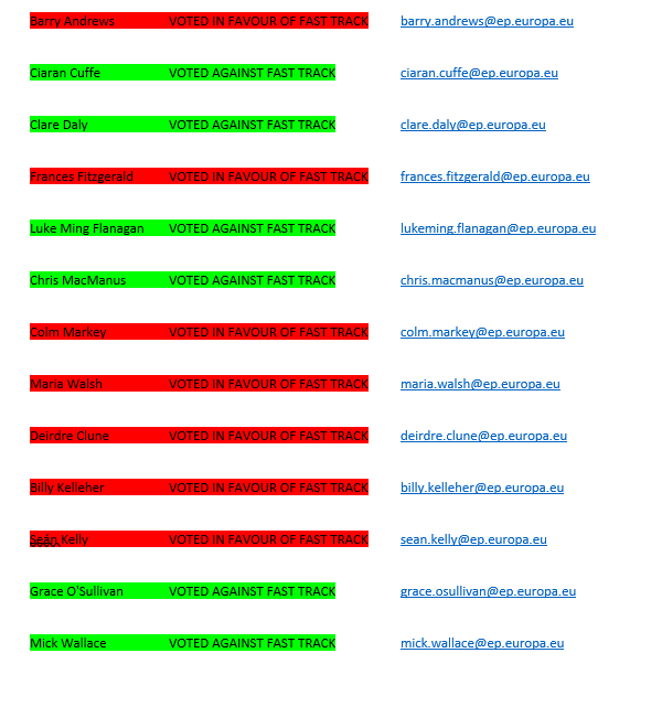 Tracey O'Mahony has compiled a list of how Irish MEPs voted on this regressive regulation and reported it on Twitter