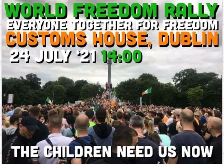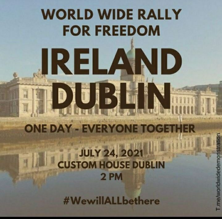 | Dublin - Event Notice Saturday July 24 2021 14:00 hrs Dublin - World Freedom Day Rally - Custom House @ 2pm Sat July 24th dublin | rights, freedoms and repression | event notice Monday July 19, 2021 23:50 by 1 of Indy![]() In solidarity with other similar events in Cork, Nationwide & Internationally on this day. Rally for Truth and Equal Status Rally for Freedom in Dublin and Cork @2pm this Saturday July 24th as part of WorldWide Rally for Freedom Why are we protesting?We are taking a stand for 5 important Freedoms:
