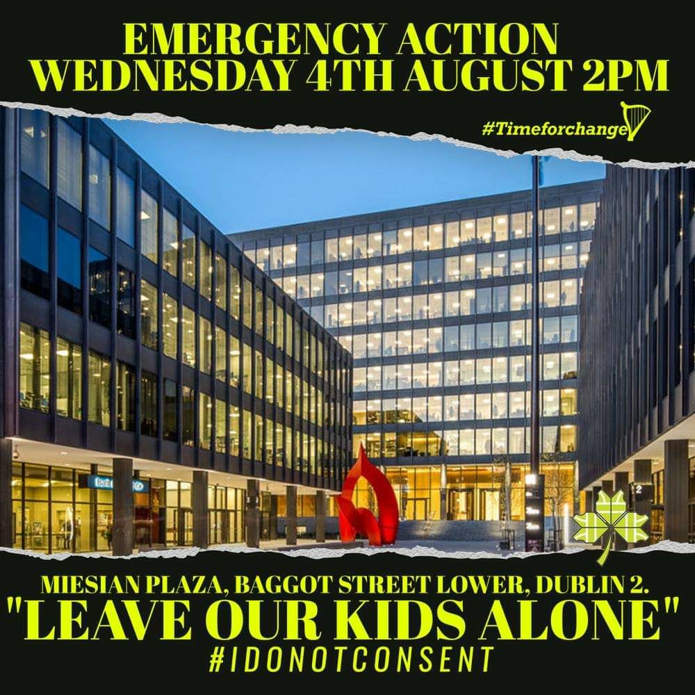 | Dublin - Event Notice Wednesday August 04 2021 14:00 hrs Emergency Action "LEAVE OUR KIDS ALONE" Weds Aug 4th @ 2pm dublin | rights, freedoms and repression | event notice Friday July 30, 2021 14:48 by Timeforchange![]() #IDONOTCONSENT - Weds 4th August @ 2pm Emergency Action -your presence is needed *Your immediate action is required* As reported in the MSM since the 17th of July due to the unrepresented move by the National Immunisation Advisory Committee (NIAC) and Stephen Donnelly. Children aged between 12-15 years of age could receive a Covid-19 vaccine as early as next week under plans being assessed by the HSE and approved by Cabinet.https://www.irishmirror.ie/news/irish-news/stephen-donnelly-urges-parents-ignore-24630469 We are calling on all parents to gather at the Department of Health Miesian Plaza, Baggot Street Lower, Dublin 2 at 2pm on the 4th of August. Video: I do NOT consent to my child being injected with the experimental Covid gene therapy vaccine ![]() Dowloand video 8.4 Mb The experimental gene therapy known as the Covid Vaccine is killing thousands all over the world. In Ireland we avoid this problem by not collecting any statistics on adverse reactions and that way when people drop dead or have serious injuries it is very difficult to find out and for people to know the full extent. Luckily the UK, the EU and the USA do collect vaccine injury reports because they were forced to set these systems years ago. They do not capture all the adverse reactions because they are voluntary based reporting systems. It is estimated they only capture somewhere between 1% and 10% of all vaccine injuries and deaths. see:Freedom of Information Request Reveals 5,522 People have Died Within 28 Days of Receiving COVID-19 Vaccines in Scotlandhttps://vaccineimpact.com/2021/freedom-of-information-request-reveals-5522-people-have-died-within-28-days-of-receiving-covid-19-vaccines-in-scotland/ Attorney Files Lawsuit Against CDC Based on “Sworn Declaration” from Whistleblower Claiming 45,000 Deaths are Reported to VAERS – All Within 3 Days of COVID-19 Shots https://vaccineimpact.com/2021/attorney-files-lawsuit-against-cdc-based-on-sworn-declaration-from-whistleblower-claiming-45000-deaths-are-reported-to-vaers-all-within-3-days-of-covid-19-shots/ |