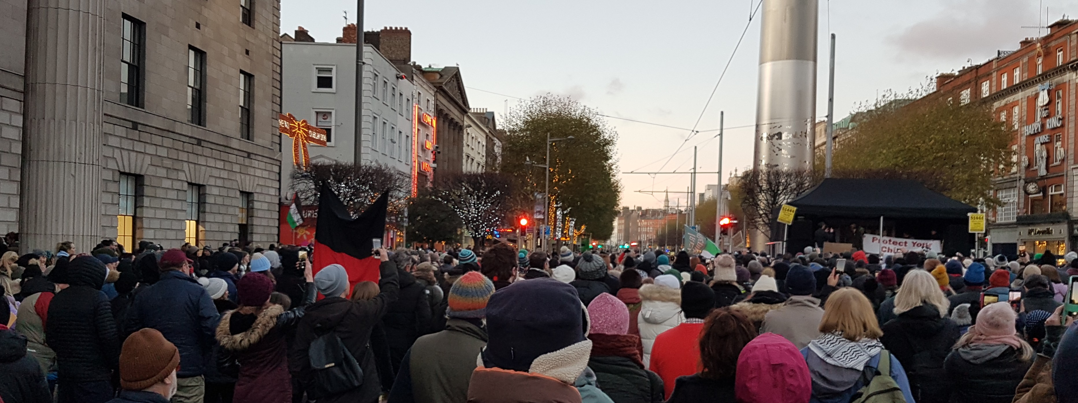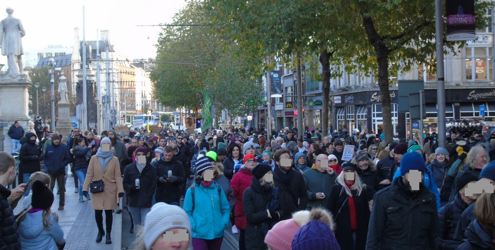 The turnout at the rally last Say was half decent with numbers ranging from 4 to 5 thousand approximately. The crowd marched from the Garden of Remembrance down O'Connell street and around by D'Olier street and back up to the Spire where the stage was setup.