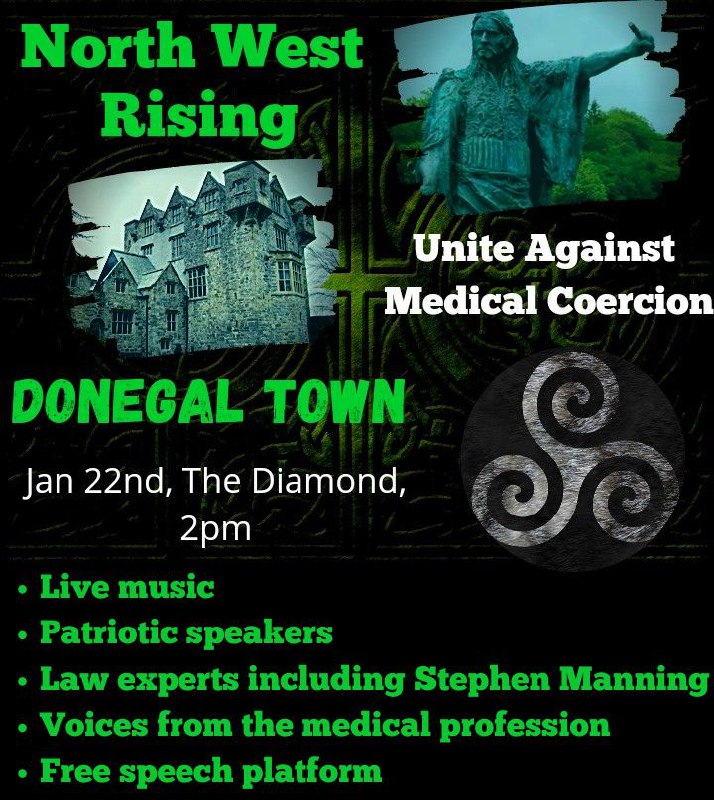 And the campaign rolls on. Prepare for Donegal Town this weekend. Share the news that the people of Ireland are gathering in Donegal next weekend in opposition to medical coercion.