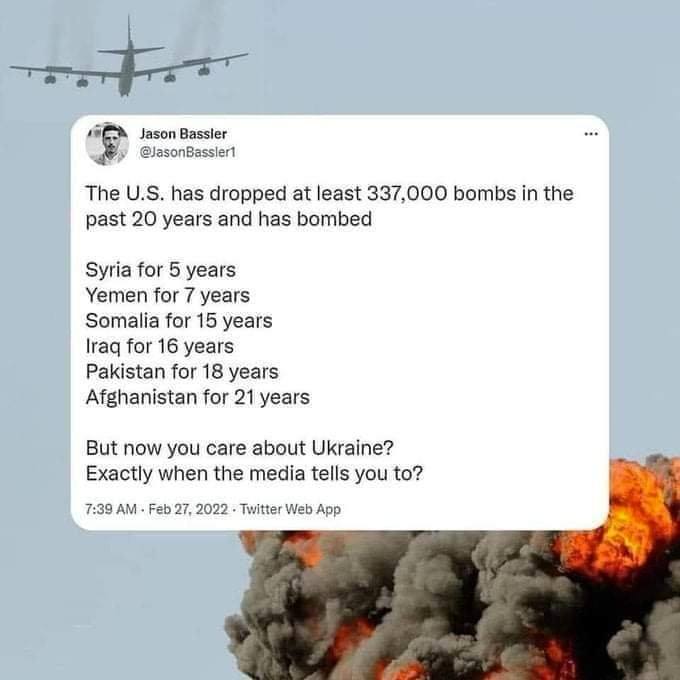What the hell has happened to Indymedia over the past 20 odd years? Anyone can see that Russia is clearly the aggressor here in the war in Ukraine by invading and bombing the hell out of Ukrainian towns and cities. Which has forced over three million Ukrainians to flee their homes as refugees. And anti war activists are treated much worse than anti lockdown activists were during the lockdowns. In Russia anti war activists face years in jail just for protesting against an illegal and unjust war against the people of Ukraine. And the selective outrage comes from the left who always take to the streets in vast numbers whenever Israel bombs Palestine, but who almost totally ignoring many other much worse wars. The outrage is so very big from the media over the Russian invasion of Ukraine because that war is so very big. It is the biggest war in Europe since World War II. In addition to the over 3 million Ukrainian refugees around ten million Ukrainian have been internally displaced and forced to flee their homes. The big question is why are so many anarchists and leftists protesting alongside the Ukrainians against Russian war crimes in Ukraine?