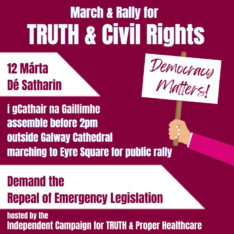 Get to Galway next Saturday, join the March & Rally for TRUTH & Civil Rights.