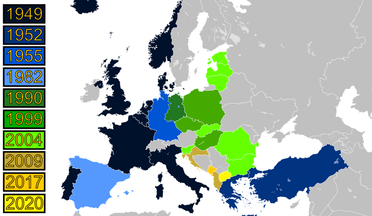 Map showing the eastward expansion of NATO since 1949 (Credit: Wikimedia)