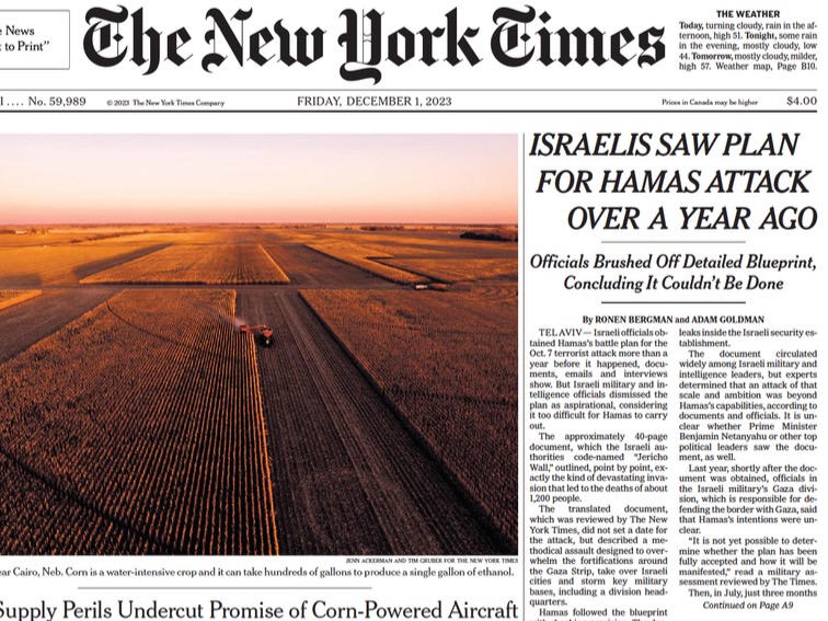 Israel Knew Hamas’s Attack Plan Over a Year Ago”, The New York Times reveals, A 40-page document code-named by Israeli intelligence "Walls of Jericho" proves this: it outlines point by point, without specifying the date, exactly the attack carried out by Hamas on Oct. 7, 2023. The plan has been circulated widely, for more than a year prior to Oct. 7, 2023, among Israeli military and intelligence leaders, but they concluded that "an attack of this magnitude is beyond Hamas’ capabilities." Last July, only three months before the attack, a veteran analyst at Unit 8200, Israel’s intelligence agency, warned that Hamas had conducted an intensive exercise similar to the one described in the plan. But an intelligence agency colonel trashed her report. On Oct. 7, 2023, Hamas executed the attack plan with "astonishing precision": a barrage of rockets, drones to knock out security cameras and automatic machine guns along the barrier surrounding Gaza, gunmen entering Israeli territory from gaps opened by bulldozers in the barrier. Exactly as it was written in the plan called by the Israeli intelliugence "Walls of Jericho."