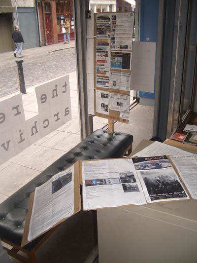 I work with some different Irish “activist” groups and I dropped stuff into the exhibition on their behalf, indymedia, Irish social forum and being the most important.