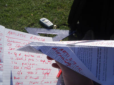 one thing that popped up was the idea that the gallery and exhibition was a space in which the artist had to edit their stuff, put order on the chaos, had to formulate exactly what the content was about. The opposite to this is where the activist community is constantly engaged in the process with not too much time for reflection or sending out the message of what they were about-