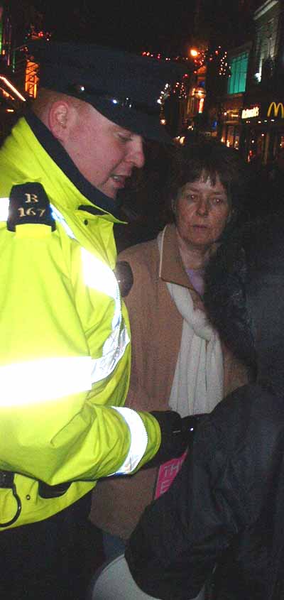 We were just quietly distributing some information and leaflets. just across the road, there were three sandwich board people on less than minimum wage advertising places to eat and other businesses. They were never approached by the wardens.
