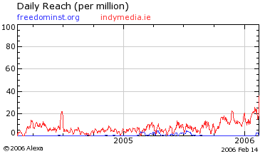 The site is looking great. I think the usability is improved greatly and it should be reflected big-time in the traffic logs soon. I noticed Indymedia.IE is on the up on Alexa.com (yeah, I know the usual caveats) - and the Freedom Institute Swiftian Hoax has been exposed as users desert the effete tossposts in comparison to Indymedia.ie which is going the other way ...