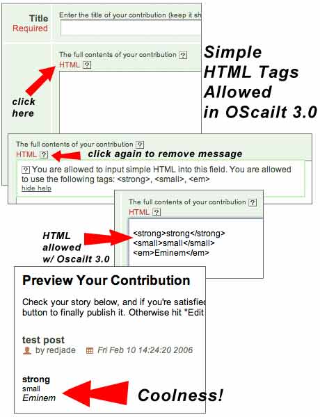 I think this email was directed at me from another thread discussion, so, here's the How-To's doing the small amount of HTML that Oscailt 3.0 allows us here....