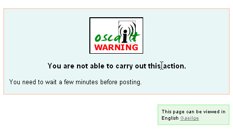 But I must have my whinge – the events page has not benefited from the whole Oscailt 3 thing. In particular, I preferred it when I could see the location of each event listed next to it (even if posters did often list their events as national or international, when there was a specific location in Ireland that could be identified with the event). I also preferred the layout whereby each event was effectively a separate row on a table that laid things out month by month. This new format of one table per week, where each day has a column just isn’t doing it for me. But it’s the location thing that’s really getting to me. Is it that Dublin-centric that we assume it’s a Dublin-based event, unless there’s another location named in the title? I don’t like it, boy.