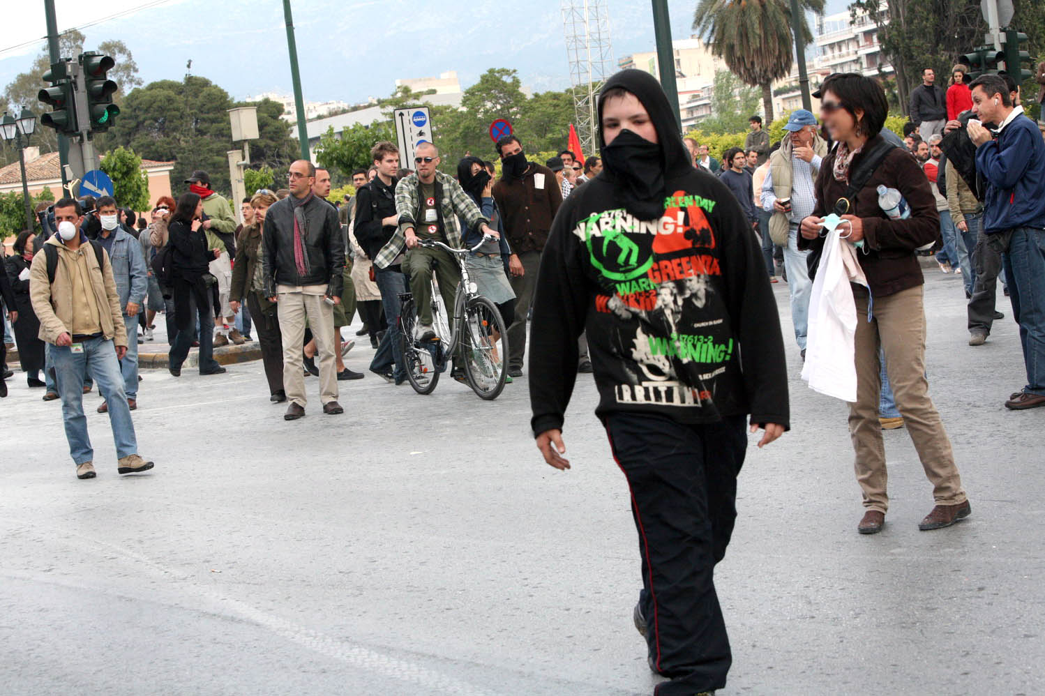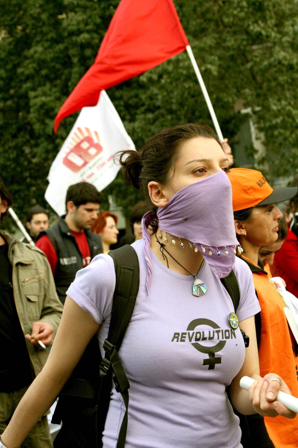 I might not have learnt anything about Art history, Peig or Geology, but I did get a ground work on auld fellah's throwing things. I believe the man is wearing a popular anti-GM food T-Shirt, Pat- ( & all others ) This might suggest he's sort of a greenie and not an anarchist or black block as many seem to be presuming.