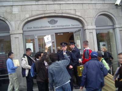 One of the women who were brought upstairs, had a judicial review pending and didn’t have her two children with her. She rang us from upstairs (on her mobile) saying that the Guards were trying to make them sign the papers and were bring aggressive towards them. She said that the guards told her that they were deporting her. She also said that she hadn’t signed the papers. It is completely illegal to deport somebody who is still in the legal process. At this stage we informed supportive T.D.s of what was happening, who faxed letters to the GNIB and McDowell, reminding him that this woman had a judicial review pending. She was freed, an hour later....'' Article as originally submitted