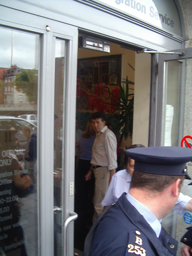 ''Caoimhe of Residents Against Racism writes: ....one of the women with us was given another date and left with one of the RAR members. The other two women were brought upstairs. We told them not to sign anything and to say that they didn’t want to speak to anybody from their embassy. As soon as the women were brought upstairs, the porter/receptionist came over to the other RAR member and myself and started shouting at us to leave the building if we had no business in it. I informed him that we did have business there and he just kept shouting. He was quite aggressive, pointing his finger in our faces and blatantly trying to intimidate us. We were then kicked out of the (public) building.