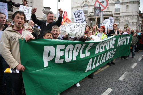 By forcing through the handing over those areas of Government Welfare and Social activity in utilities, housing, education, healthcare to private profit driven companies the 'market' gains access to the taxpayers funds and exploits those for purely profit motivations. Such is the agenda behind both the Tara motorway (Halliburton) and Shells Gas terminal in Mayo. Peoples lives matter less than the 'bottom line'.