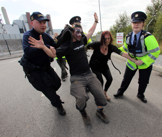 Plucky campers got up at the crack of dawn to drop banners at Lanesboro and Edenderry power stations.