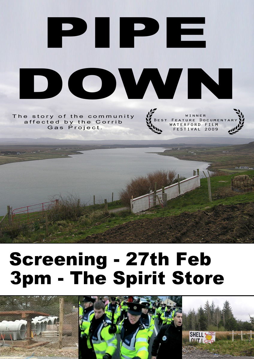 Pipe Down is an hour long documentary that tells the story of a rural community in Co. Mayo in Ireland, who have been battling the oil giant Shell over their plans to put a dangerous raw gas pipeline through the community and complete construction of a gas processing terminal that is a threat to their delicate environment.