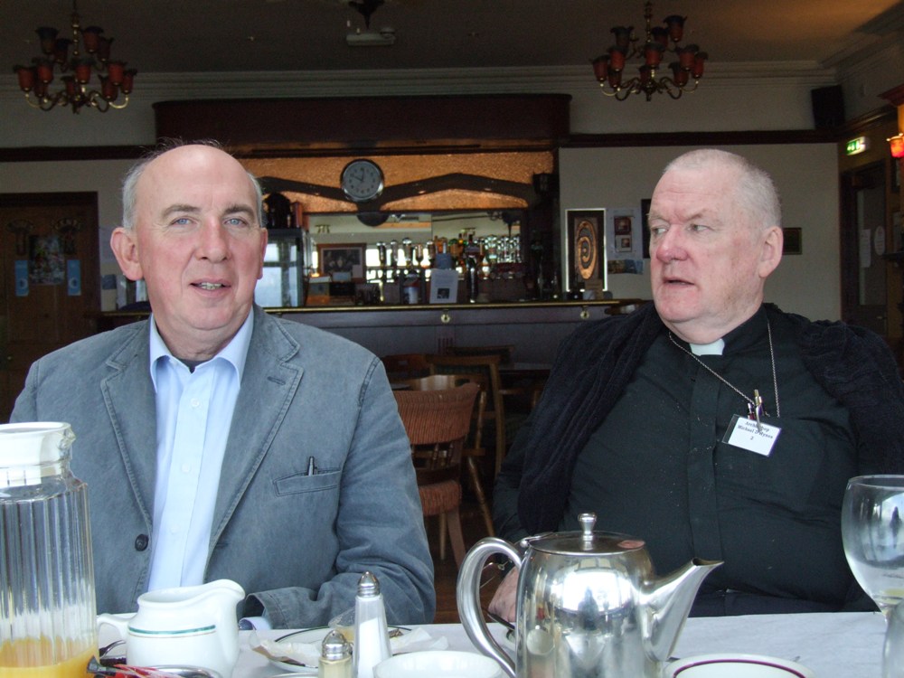 The picture shows Dermot Mooney, chairperson, and Archbishop Michael Desmond Hynes OMD, secretary, in The Strand, Omeath, Co Louth, on Sunday morning 10 October 2010 after breakfast and during the meeting of Cooley Environmental and Health Group reported on above.