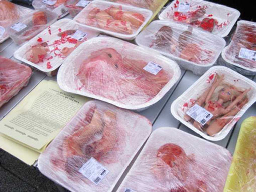 The past World Week for the Abolition of Meat from 22 to 29 January 2011 - the very first WWAM of the year - was a success. Varied events (such as street actions, silent demonstrations, "human" meat tray actions, protest marches...) were organized in over 70 towns and cities, mainly in Europe, but also in South Africa, in both Americas, in India as well as in Japan (here's the list). These events were largely covered in the media.