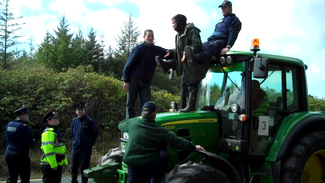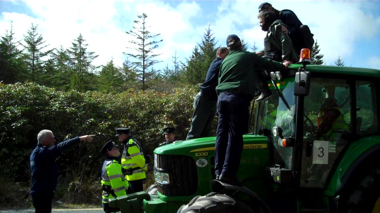 The recording starts with the women being arrested and the camera been taken by Gardaí. The discussion in the Garda car includes the Gardaí talking about threatening to rape one of the women in their custody and laughing. They also talk about whether they should bother adhering to safety procedures for removing protesters from heights: the Sergeant advocates ignoring the rules learned in Garda training.