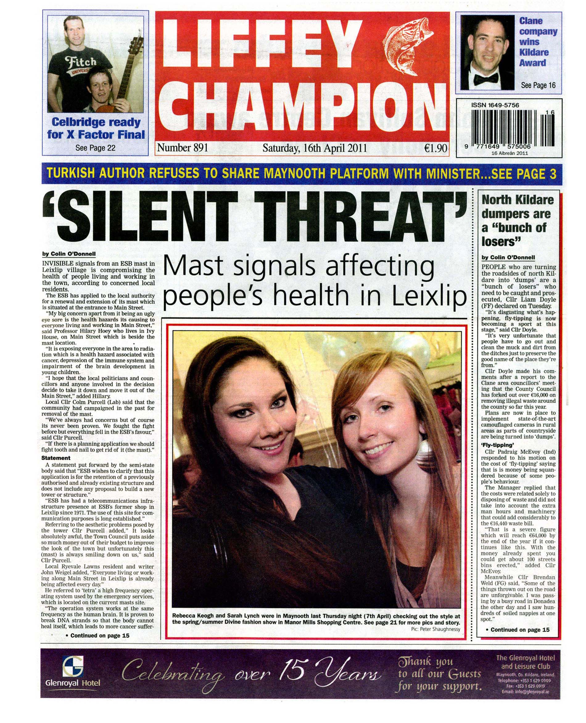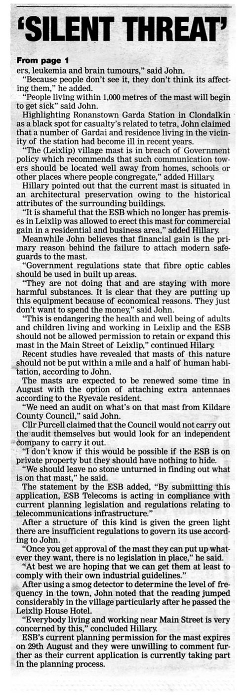(2)Phone masts are put up by corporate interests beside our houses. And because of the way the system is set up, there is little choice in the matter and little any single individual can do to stop them.