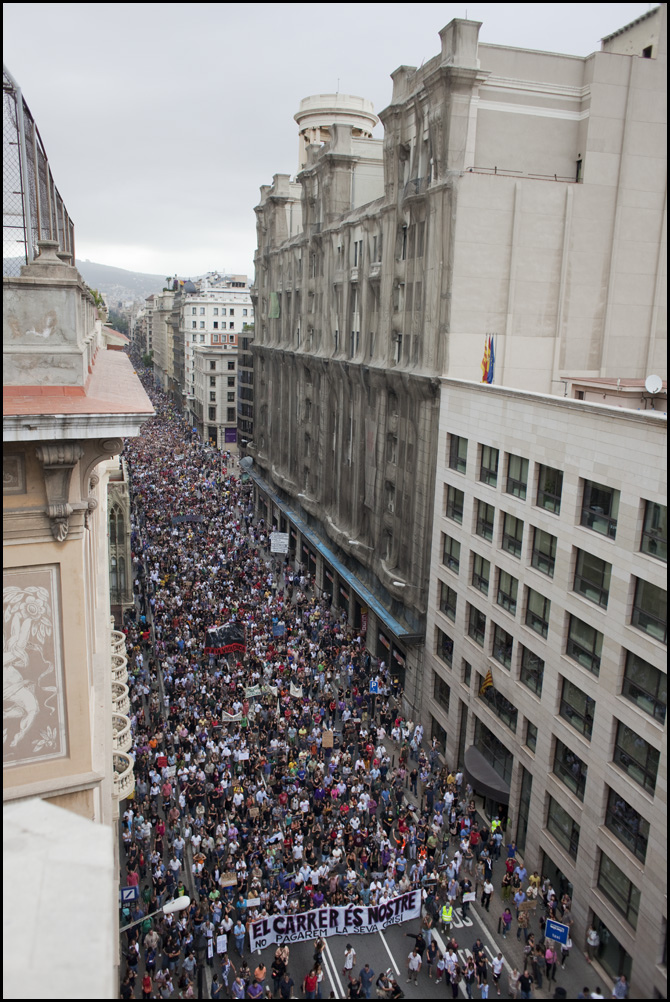 In many ways this is almost an echo, a year ago the Greeks hung a massive banner from the Acropolis with a simple message: “Peoples of Europe, Rise Up”. Over the last year we have seen some responses, In October we saw massive strikes in France, we saw the students of London rebel against the harsh cuts being imposed at Christmas and in Spain we saw a general strike on S29, September 29. But none of this seemed to take off quiet as powerfully as that which has unfolded here in Spain over the last 10 days. In recent months we have seen the "Arab Spring", which was a massive inspiration to the "indignant" in Spain; the idea that it IS POSSIBLE to mobilise the masses (especially more so now with social networking tools; facebook, twitter etc...) and to absolutely change things PEACEFULLY. The movement here in Spain continues to grow and grow, and outside too it has sparked in a very quick profound way (650 global events around planet 3 days ago) but this response from Greece is something very very special, because of the size, because this is all about re-questioning, re-examining, re-creating the whole idea that came from Greece so many centuries ago; DEMOCRACY.