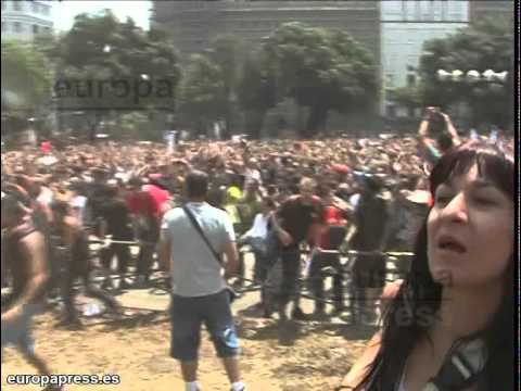 The Movement 15-M crosses borders. At least 7,000 people, police said, met on Wednesday in a peaceful manner in Syntagma Square (Constitution) of Athens, in response to a call of "outraged" Greek to protest against government austerity measures, Efe reported . At the rally in front of the Greek Parliament, a banner written in Castilian in the colors of the Spanish flag reads: "We are awake What time is it? It's time to go."