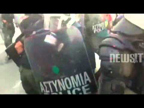 vid: NewsIt.gr: Τα ΜΑΤ χτυπούν πεσμένο διαδηλωτή
